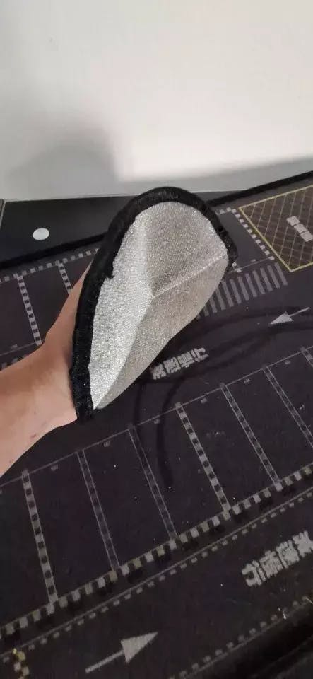 Door de stof met de voorzijde heen en weer te bewegen ontstaat wrijving, waardoor de handschoen statische elektriciteit opwekt.